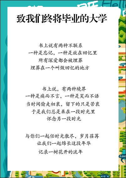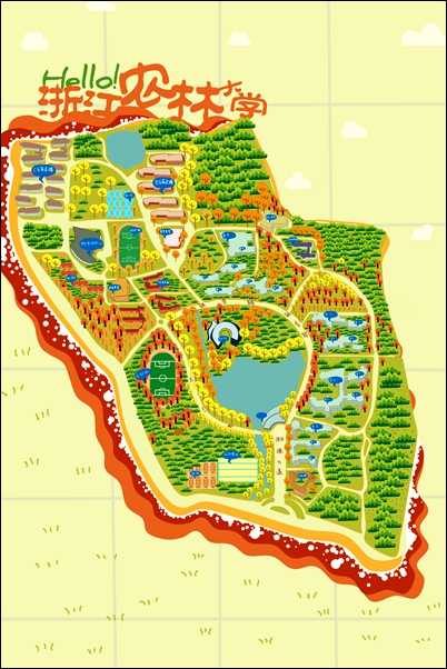 再回到电脑前,心里装着满满的记忆,怀着这些单纯的小美好一笔一笔勾勒出我心目中的校园。在一些地标上添加些卡通表情,或者是简笔画样的建筑物,那些花花草草的星星点缀。解决一个个难关后,地图逐渐展现成成我心中的模样。
