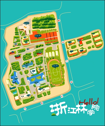 绞尽脑汁想个创意大约是世上最痛苦的事情之一啦,我的毕业设计便曾经这样深深地折磨着我,相爱相恨互相僵持。大致是离校前最后的作业,在某个月黑风高的夜晚,老天不负我,灵光乍现——为什么不制作份手绘地图呢,美美的校园承载着我四年的情感大概会在纸上留下可珍存可回忆的萌萌哒的形象吧!而且很多学校都有Q版地图,我为什么不试试自己的力量呢?