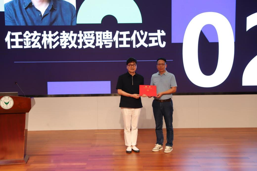 金松恒为任鉉彬教授颁发学院客座教授聘书。