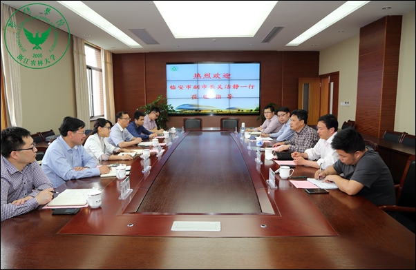 5月13日,临安市副市长、青山湖科技城管委会副主任吴洁静一行6人来院考察交流,学院领导寿韬、张晓优、蔡永华接待了来访客人。相关部门负责人参加座谈会。