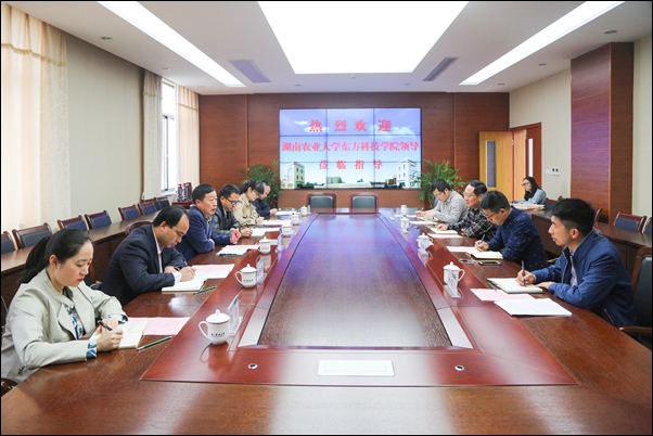本网讯 4月12日,湖南农业大学东方科技学院党委书记周其林一行6人来必赢官网考察交流。院长石道金、副院长金松恒接待了来访客人,学院办公室、学工部有关负责人参加座谈会。